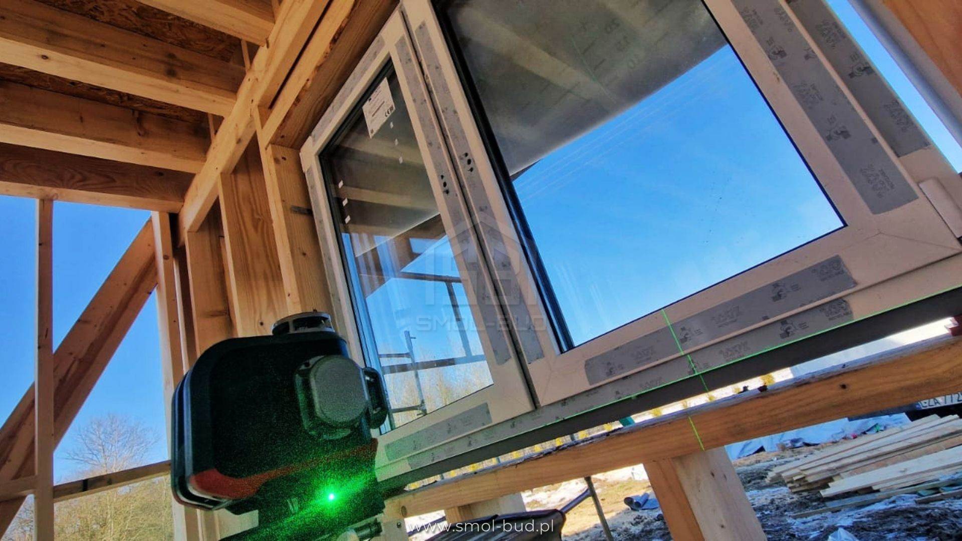 W tym przypadku wykonaliśmy konstrukcję z drewna C24, które jest cenione za swoją wytrzymałość i bardzo dobre parametry techniczne. Tego typu materiał świetnie sprawdza się w budownictwie szkieletowym, zapewniając trwałość całej konstrukcji oraz precyzję wykonania. Dzięki temu inwestor otrzymał dom dopracowany zarówno pod względem technicznym, jak i estetycznym.