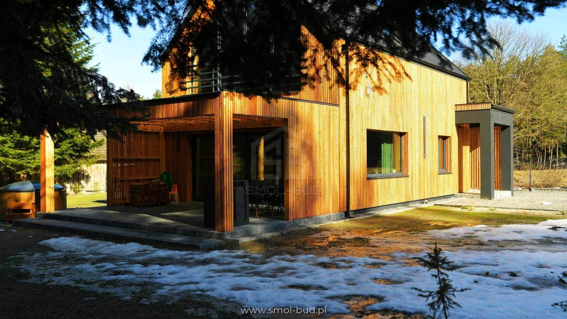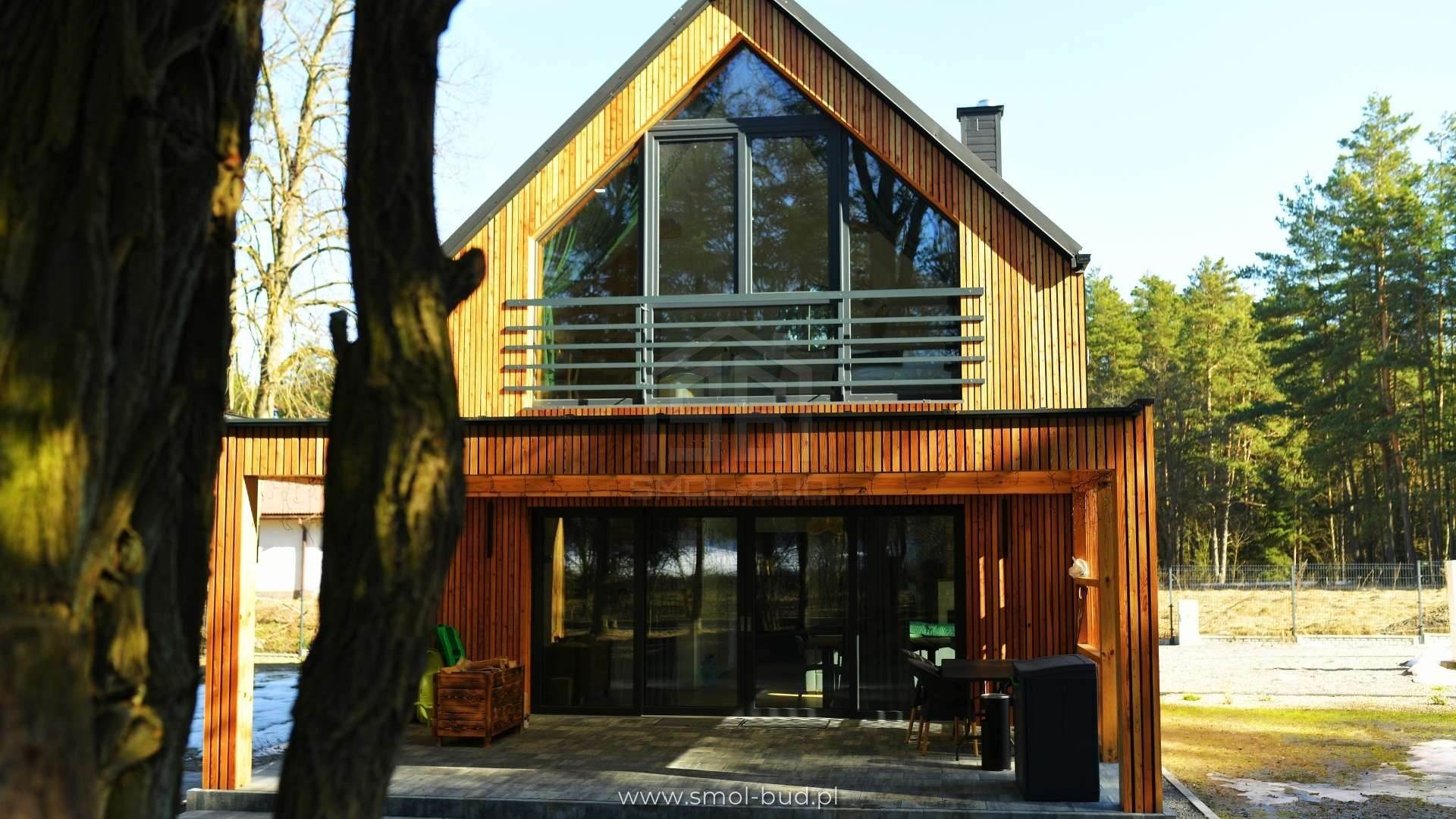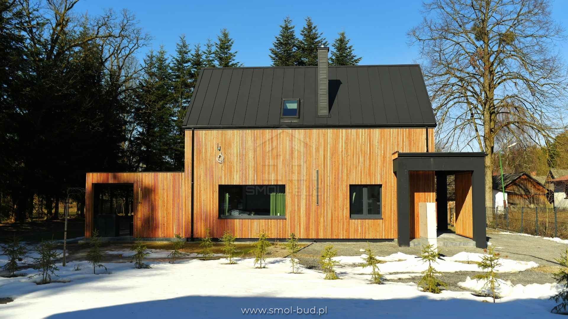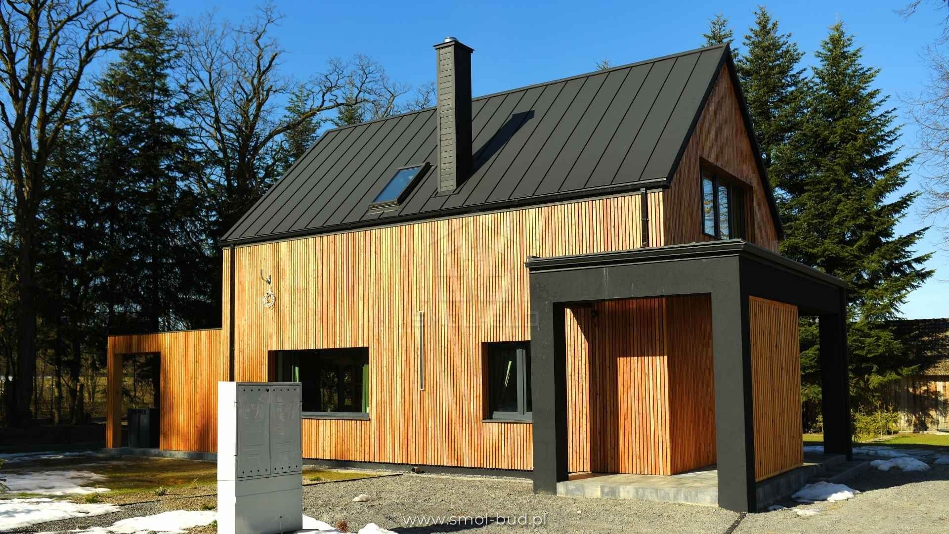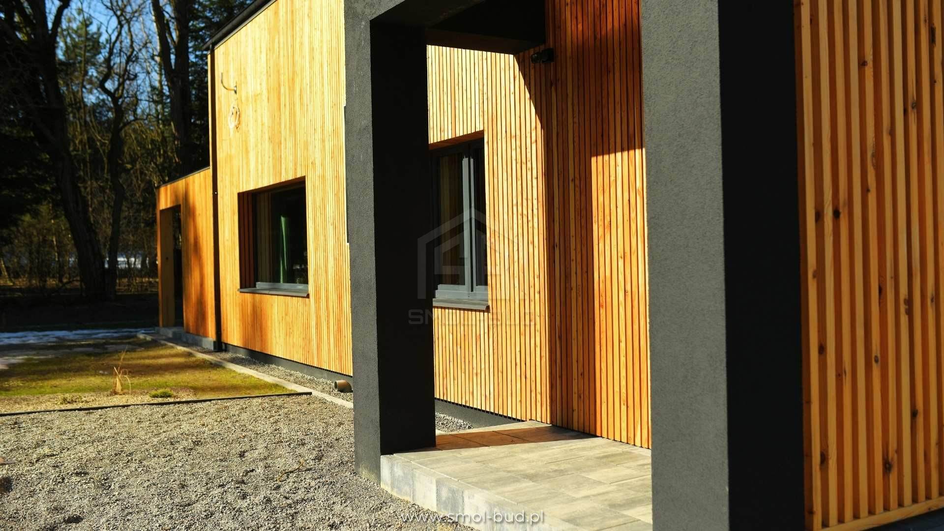 Nowoczesny dom szkieletowy z elewacją drewnianą – Szopowe