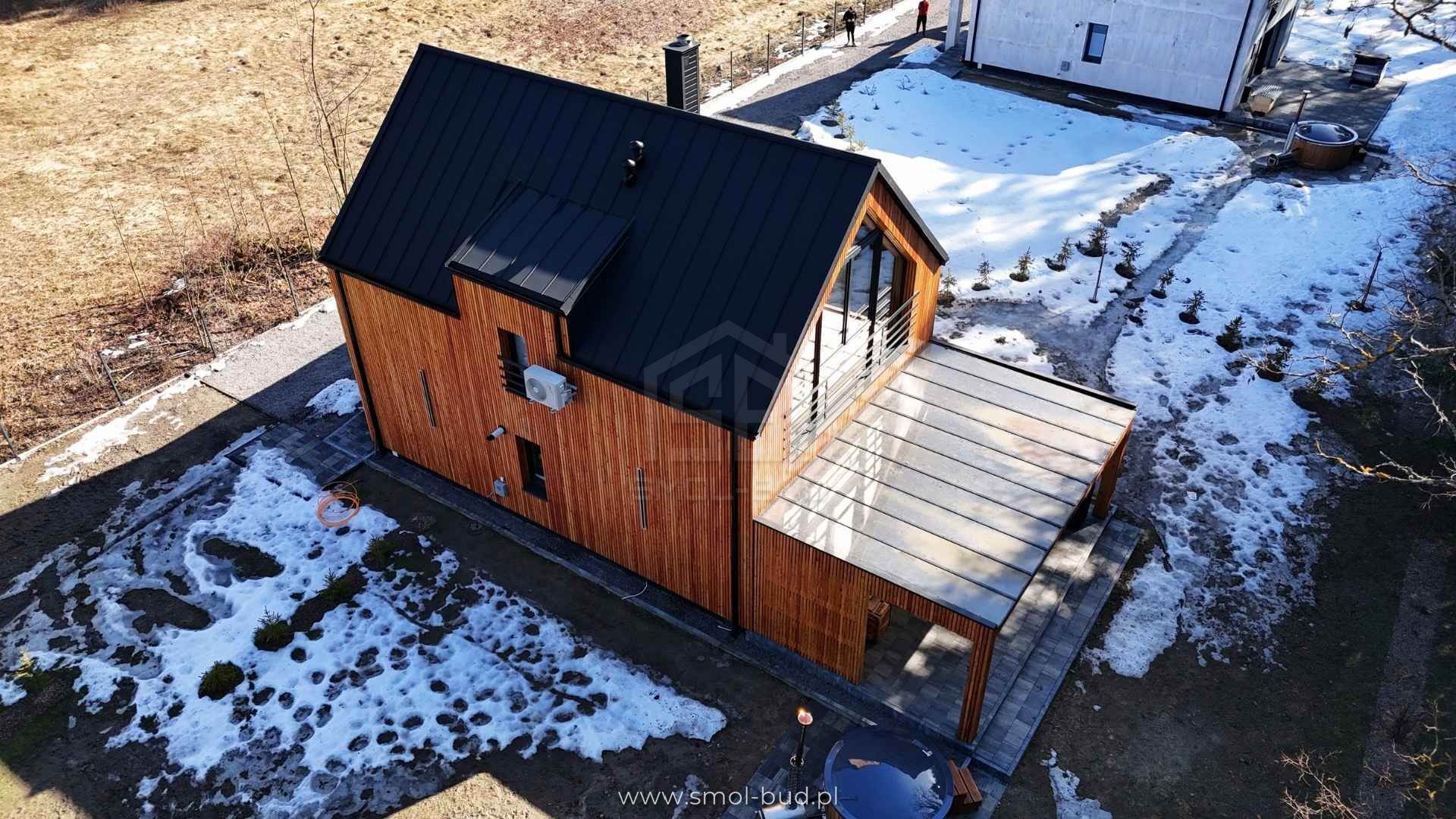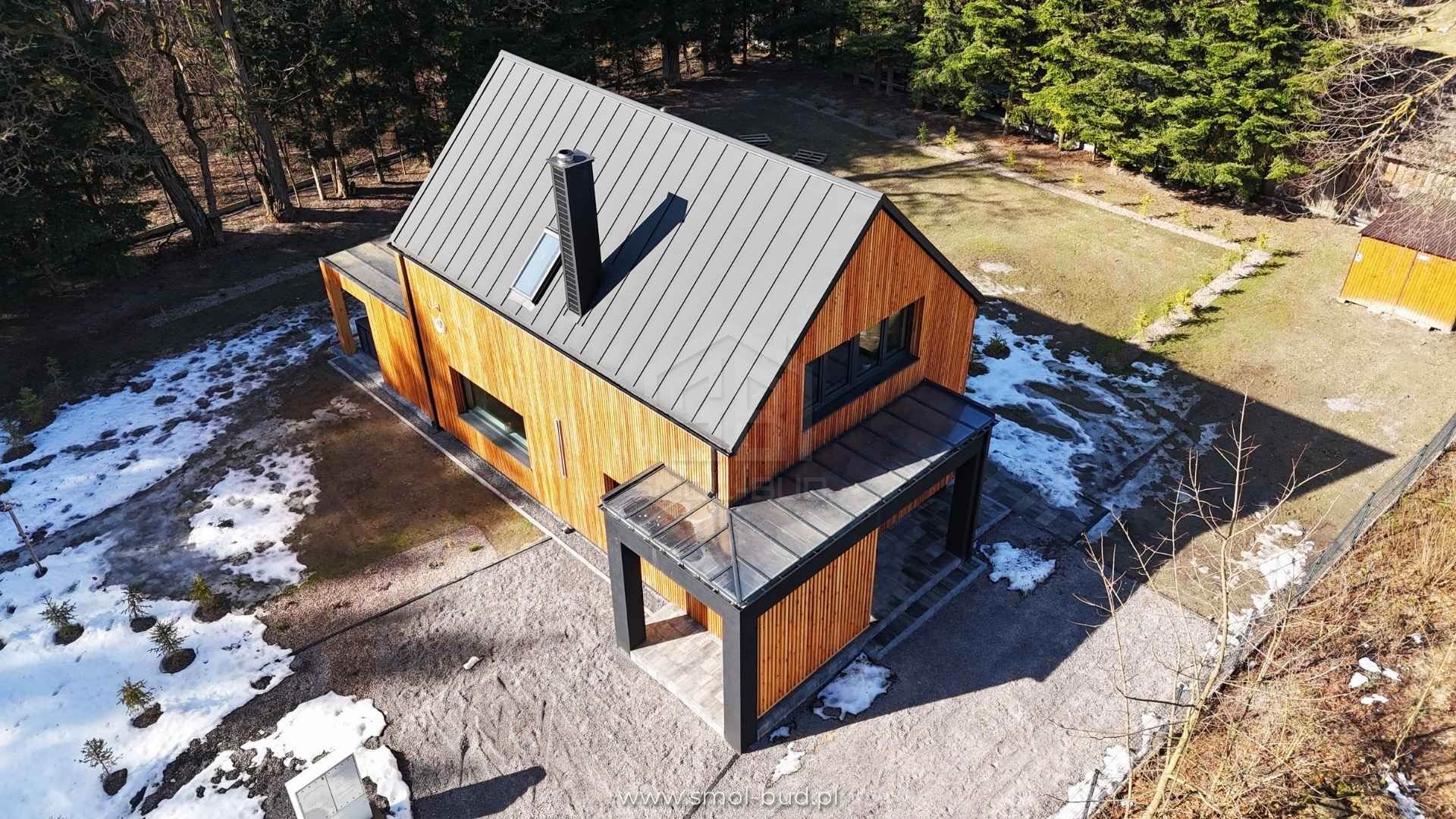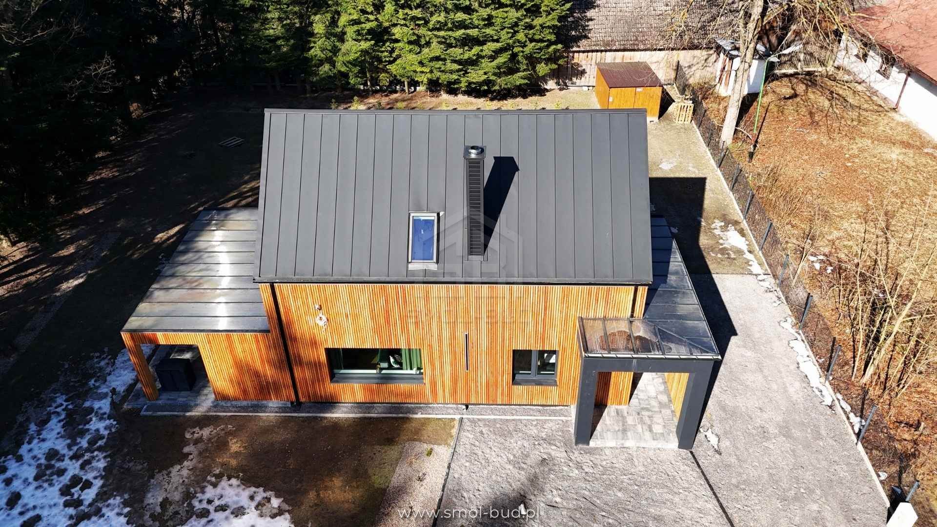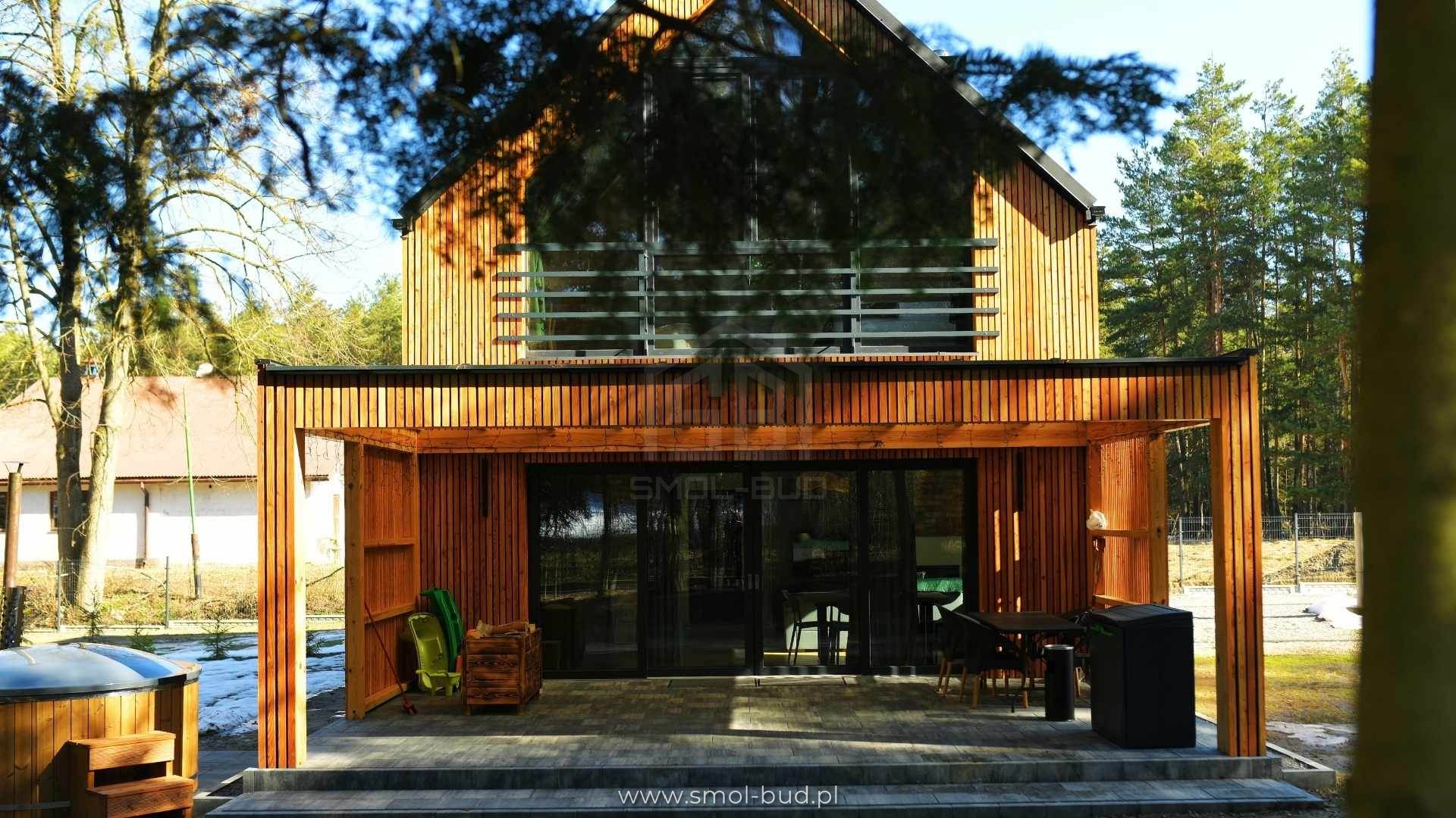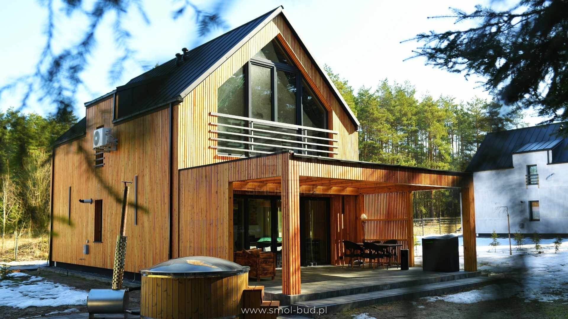 Nowoczesny dom szkieletowy z elewacją drewnianą – Szopowe